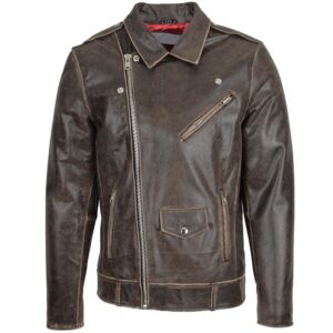 Mens Leather Urban Biker Style Jacket Hugo Zenith Brown Vintage