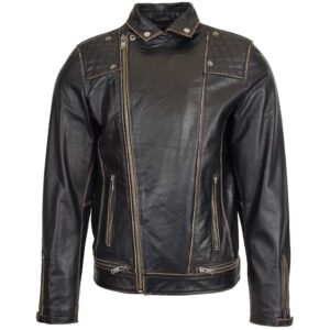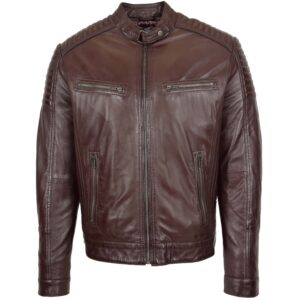 Men’s Retro Style Zipped Biker Jacket Real Leather Soft Casual