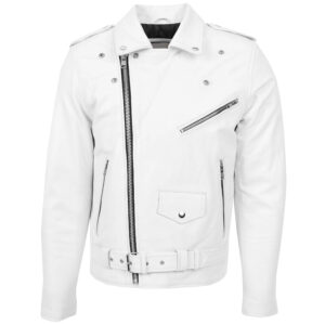Men’s White Leather Biker Jacket Heavy Duty Moto Biker Style
