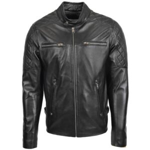 Mens Real Leather Biker Jacket Quilt Detailing Jackson Brown