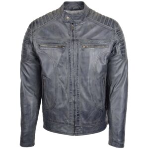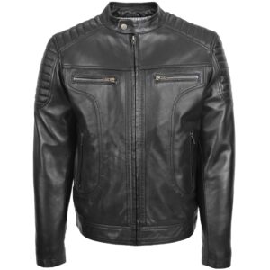 Mens Real Leather Biker Jacket Casual Zip Fasten Style Jaime