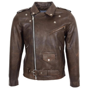 Mens Leather Vintage Biker Jacket Colin Zenith Dark Brown