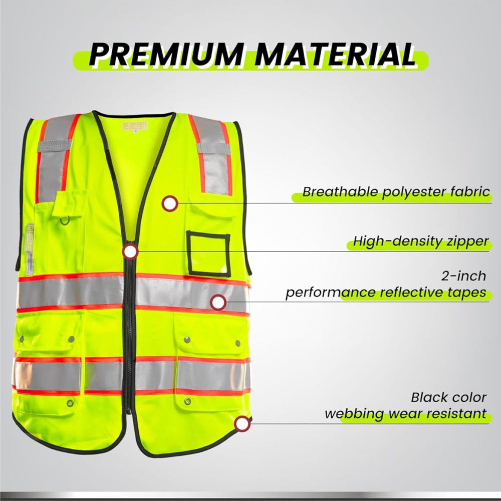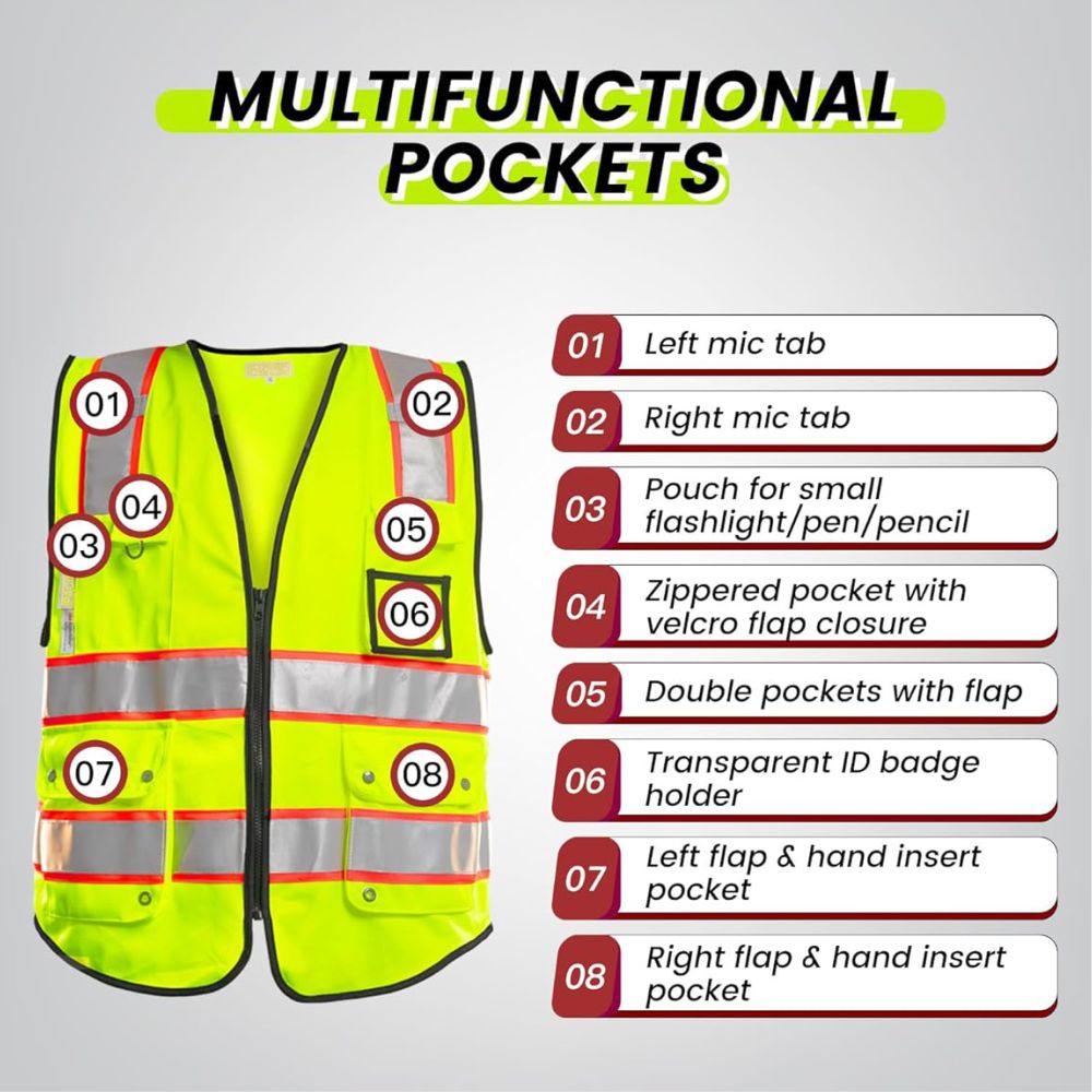 If you need a vest that is bright, tough, and organized, choose the 3M High Visibility10 Pockets Class 2 Safety Vest for Men by Dedo Sports. It is made to work as hard as you do.