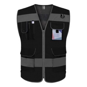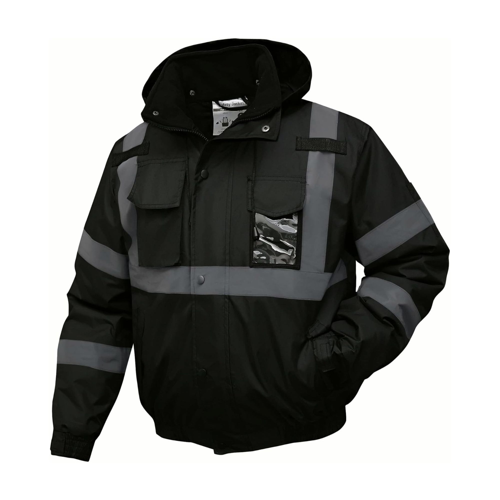 Hi Vis Reflective Black Jacket for Men Waterproof Safety Jacket