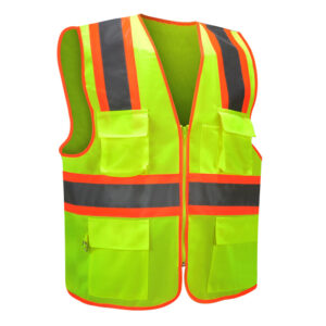 2″ reflective tape on chest, back, sleeves, shoulders (360°)
