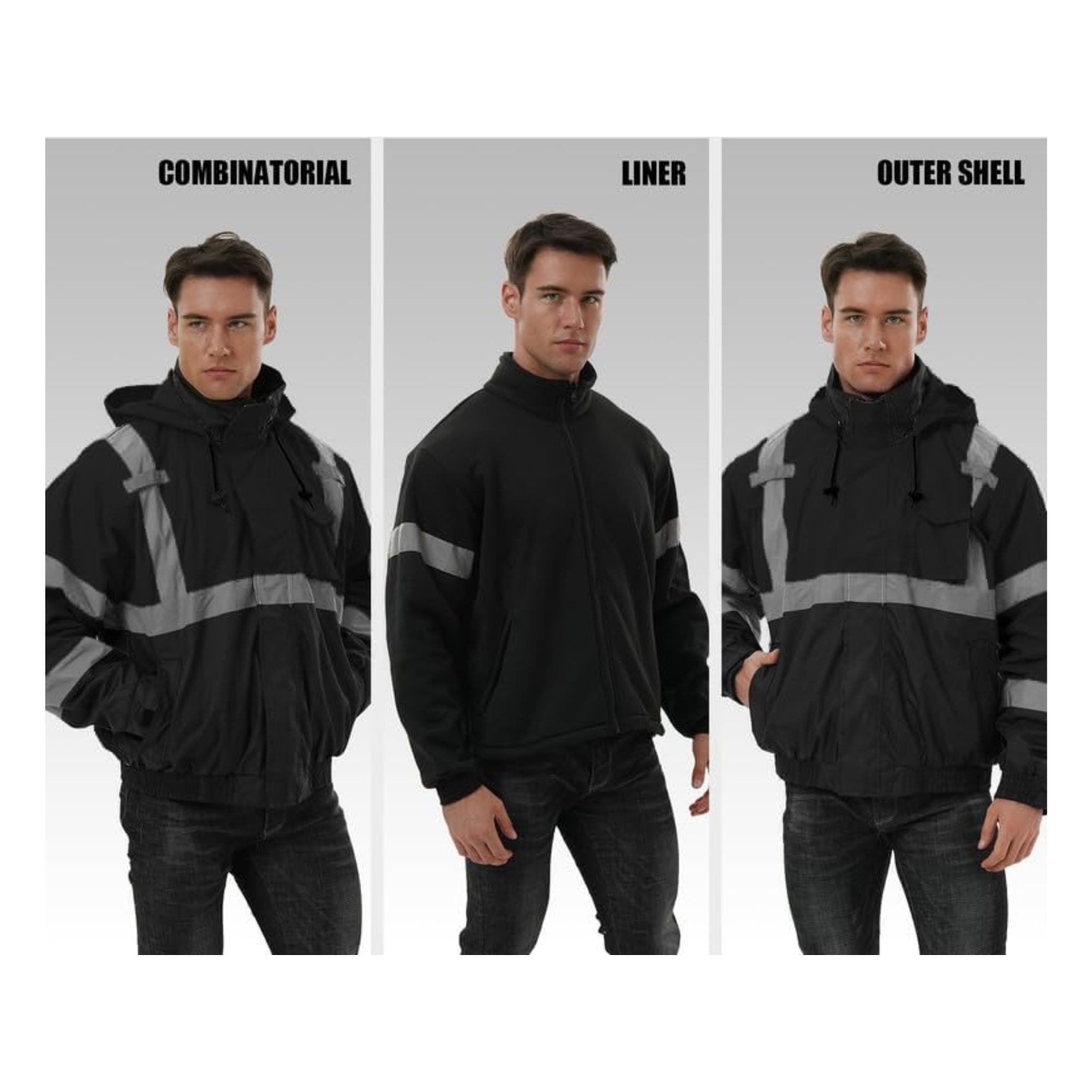 3-in-1 High Visibility Winter Bomber Jackets Zip Out Fleece Liner Reflective Safety Coats for men Waterproof ANSI/ISEA Class 3(Black 3XL). Waterproof Oxford shell with taped seams. Zip-out fleece liner for adjustable warmth. 2″ reflective tape for 360° visibility. Zip front with storm flap, ID window, mic tabs, sleeve pen pocket. ANSI/ISEA 107 Class 3.