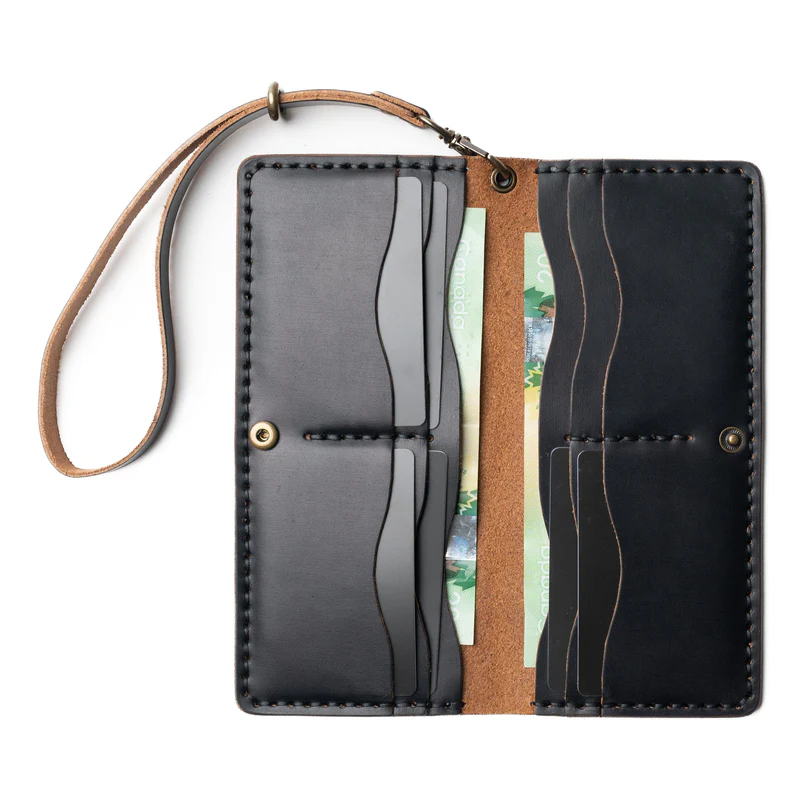 Crafted with care, it is hand-sewn with thick Tiger Thread, ensuring durability and longevity. This leather clutch includes generous storage space, featuring 8 secure card slots, ample room for unfolded cash, and even space for a checkbook. The snap button closure keeps everything secure, while its compact size (7.5″ x 3.5″ x 0.5″) ensures it remains sleek and functional. Dedo Leather Crafts stands behind every product with a lifetime guarantee, offering lasting quality and satisfaction.