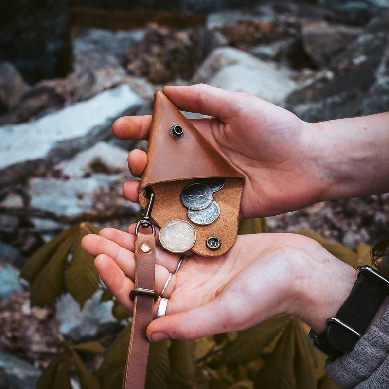 The Leather Triangle Pouch – Natural by Dedo Leather Crafts is the perfect solution for carrying your essentials without the bulk. Crafted from premium full-grain leather, it features a sleek triangular design with a detachable wristlet for hands-free convenience. Ideal for change, earbuds, or small essentials, it’s stylish and functional.