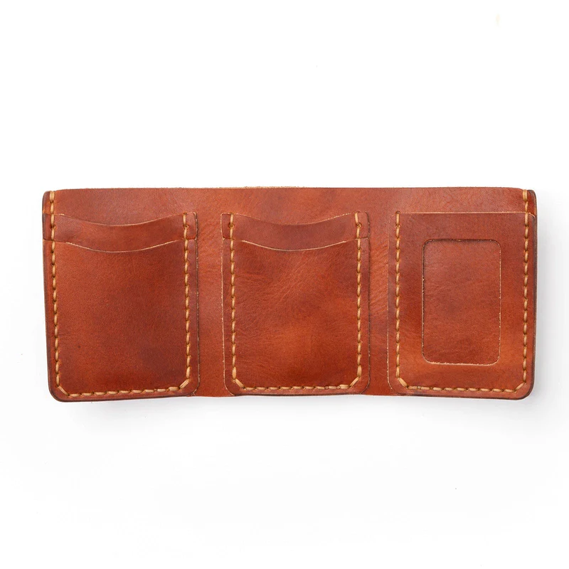 The Leather Trifold Wallet by Dedo Leather Crafts is designed for those who need space without the bulk. Crafted from premium full-grain leather, this wallet not only holds cards and cash but improves with age, developing a rich patina that tells your story over time. Its robust construction ensures long-lasting use, making it an ideal companion for long trips or daily adventures.