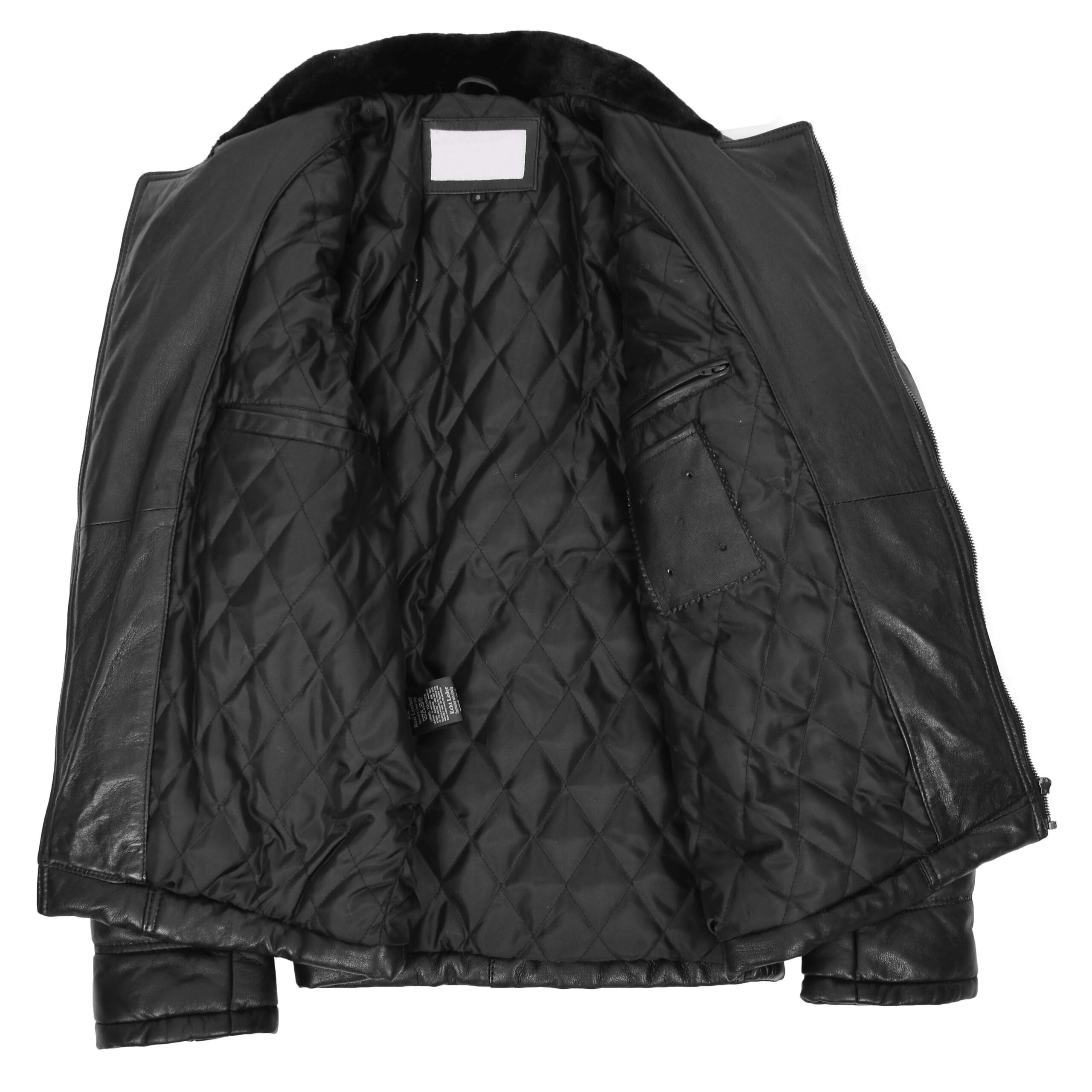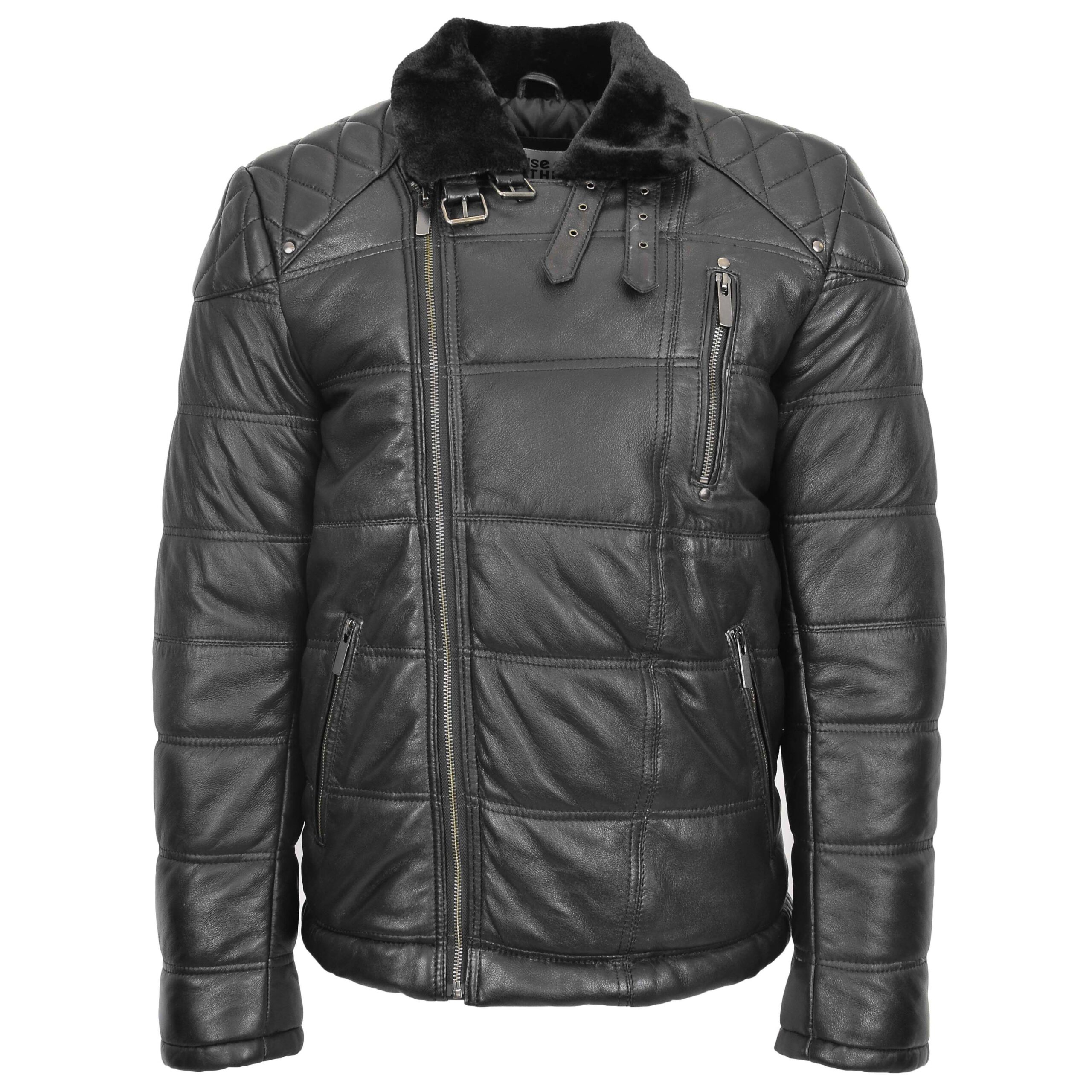 The Men Leather Biker Puffer Black Jacket blends biker style with puffer warmth. The padded body feels soft. The fur collar adds comfort. The diagonal zipper gives a sharp look. Dedo Weather Works builds a solid winter jacket with clean stitching, warm lining, and a strong black leather finish.