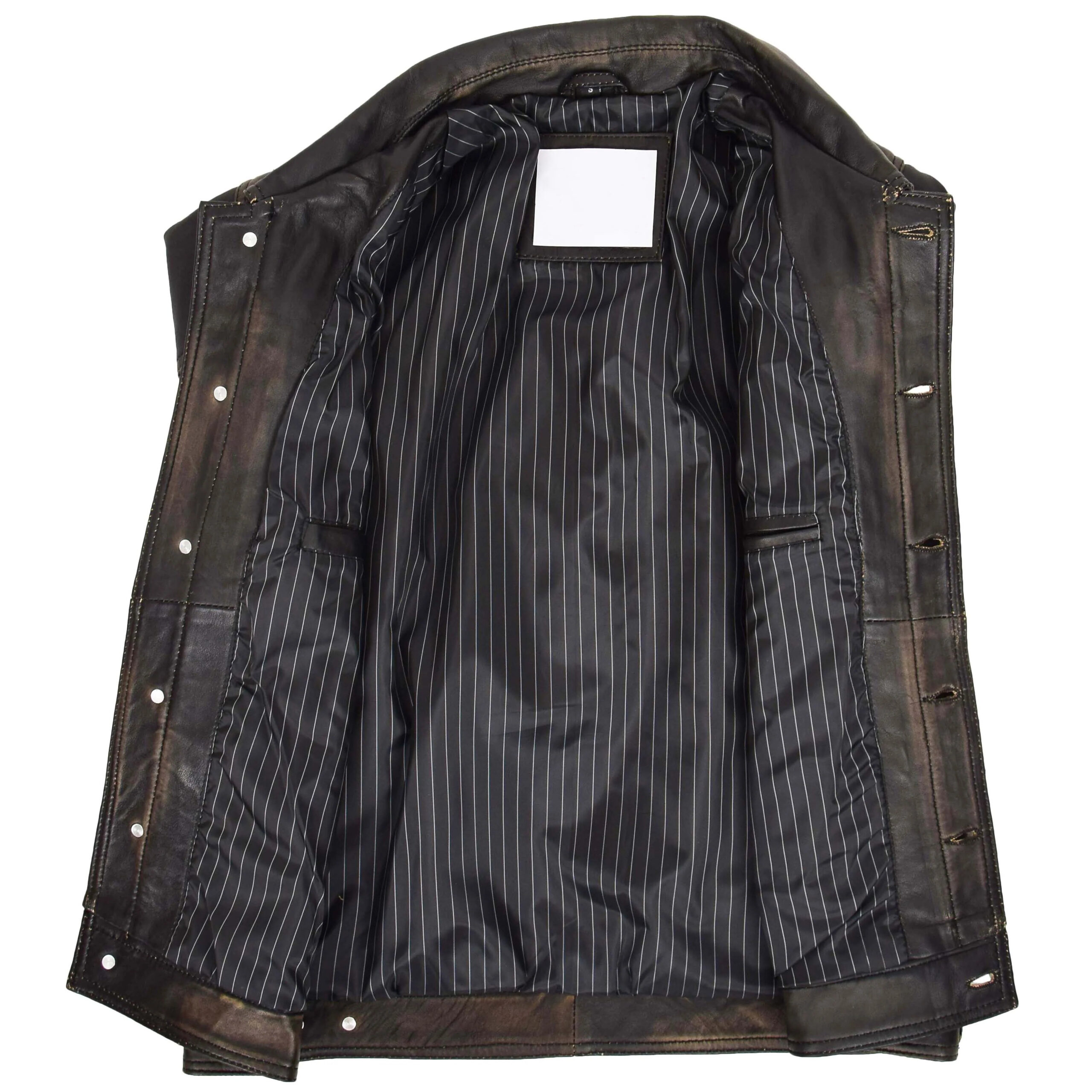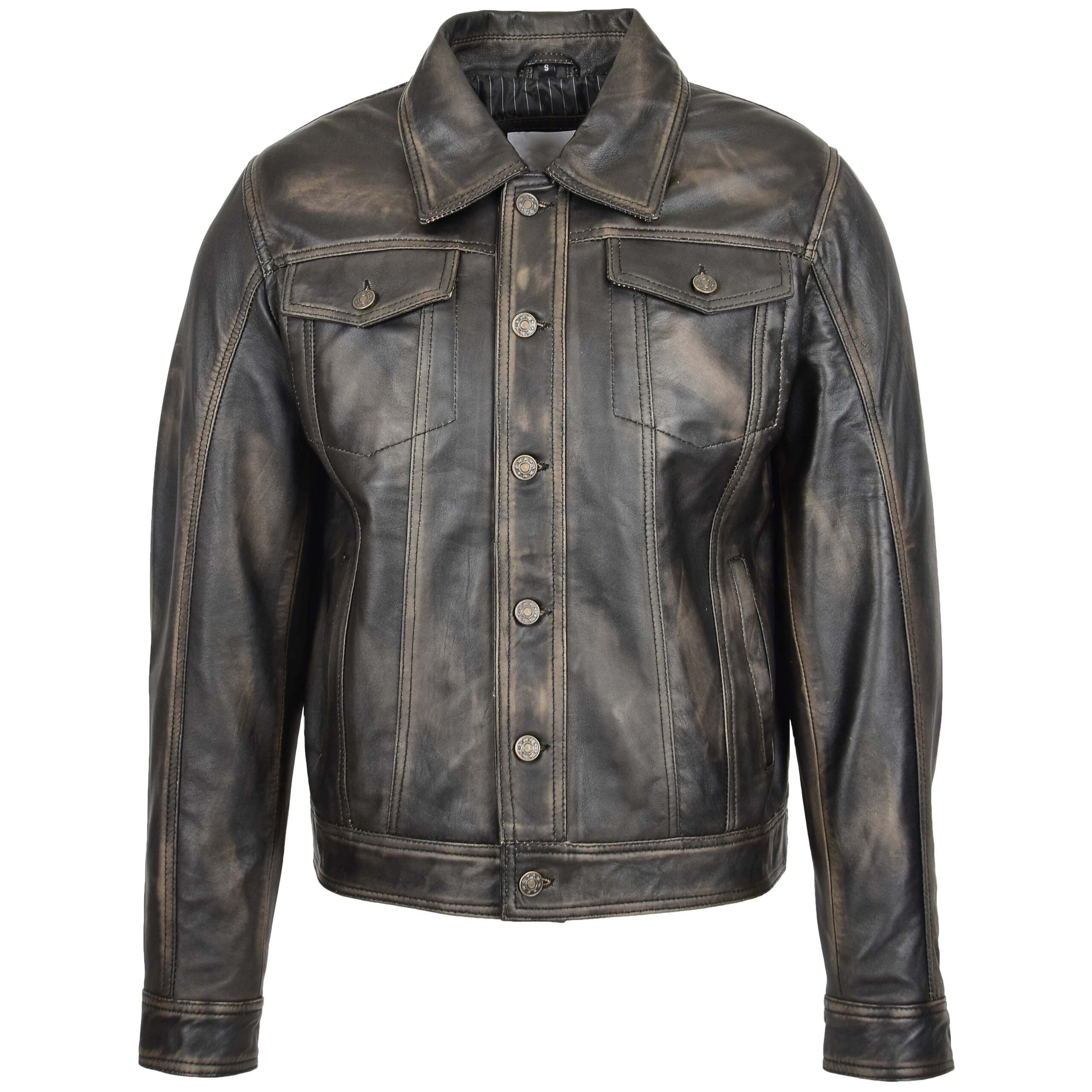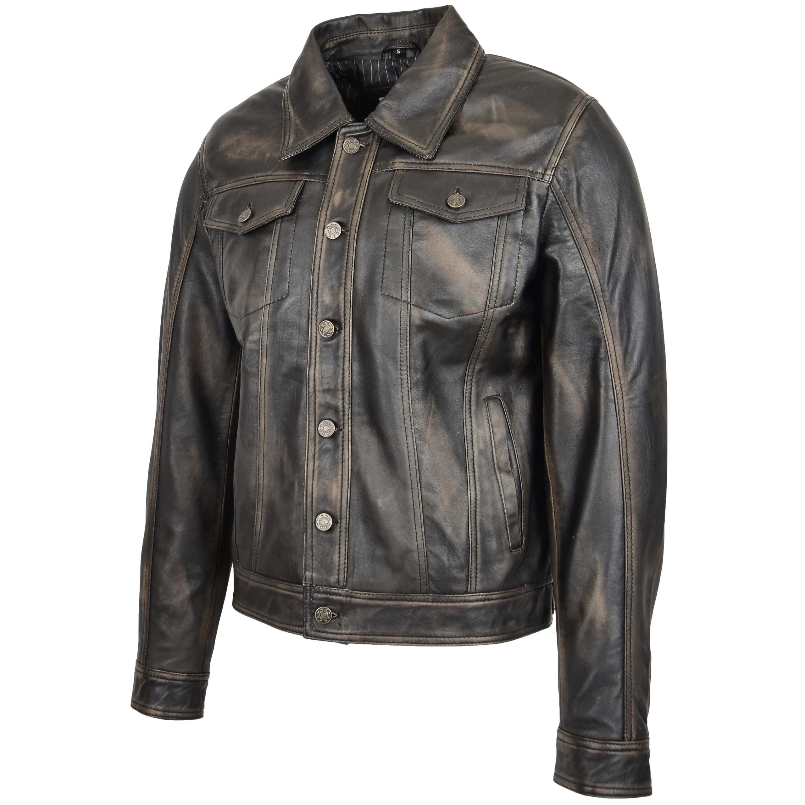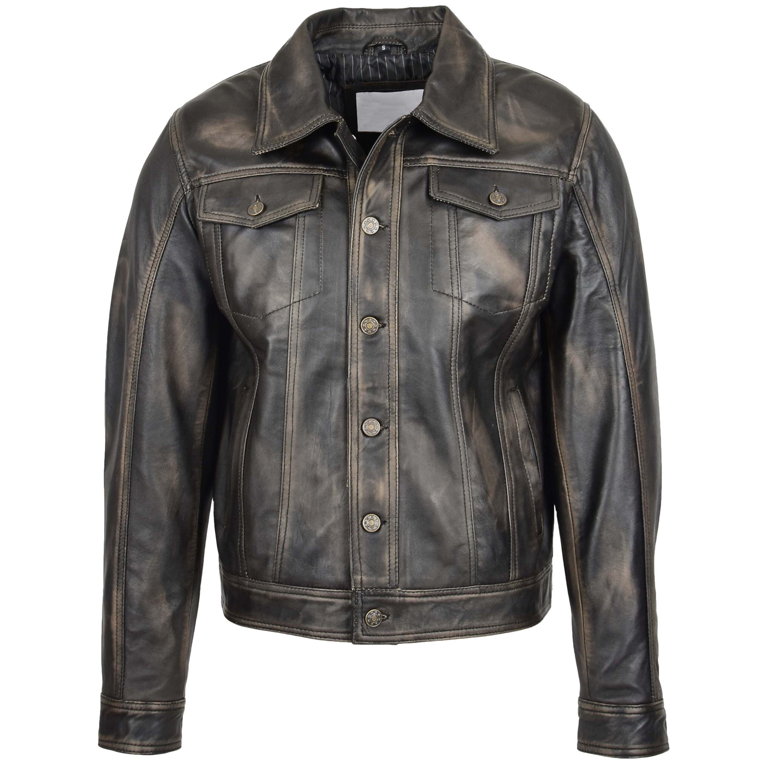 Men’s Black Rub Off Leather Biker Jacket Rider Casual Style