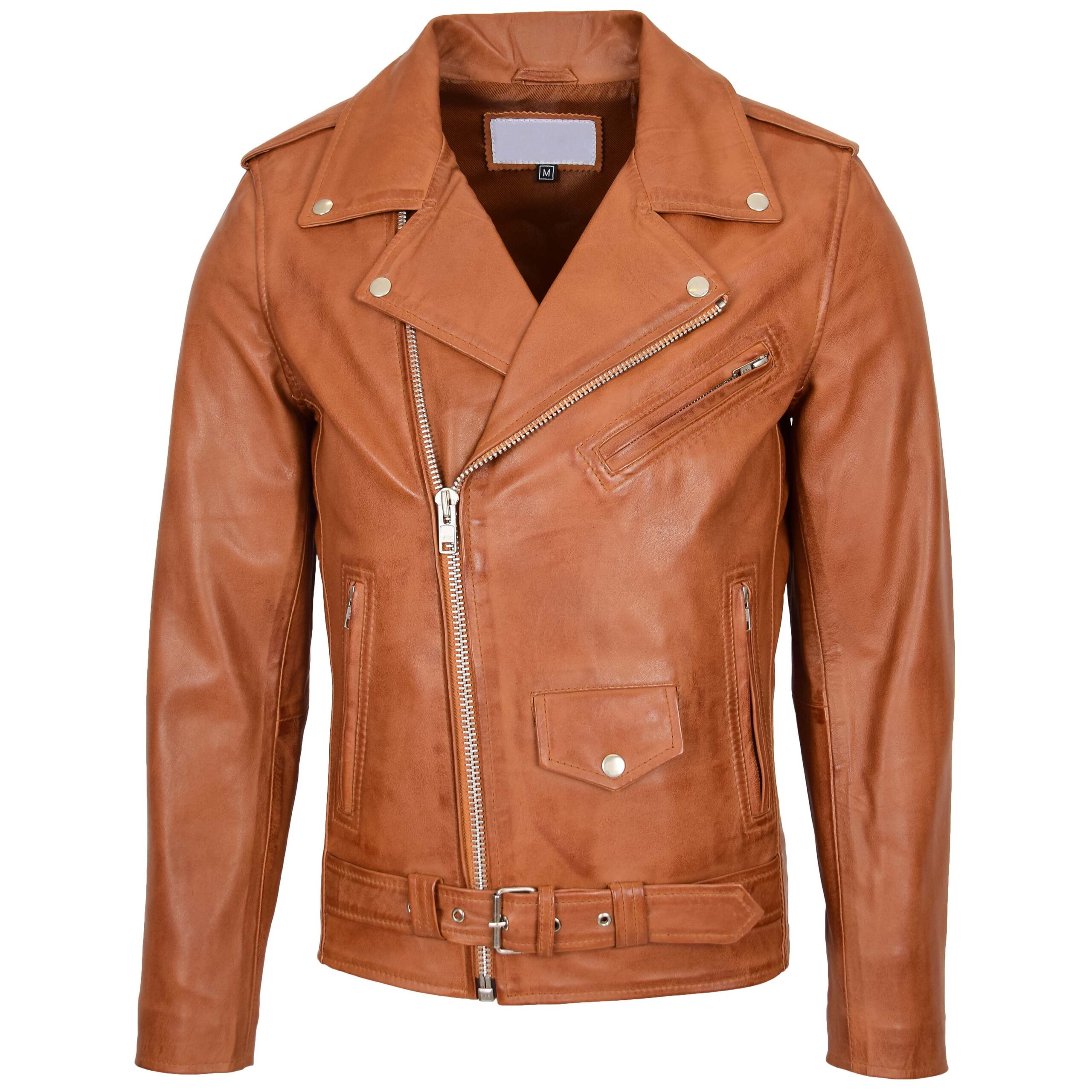 Men’s Leather Biker Jacket Brando Style Johnny Dynamo Tan