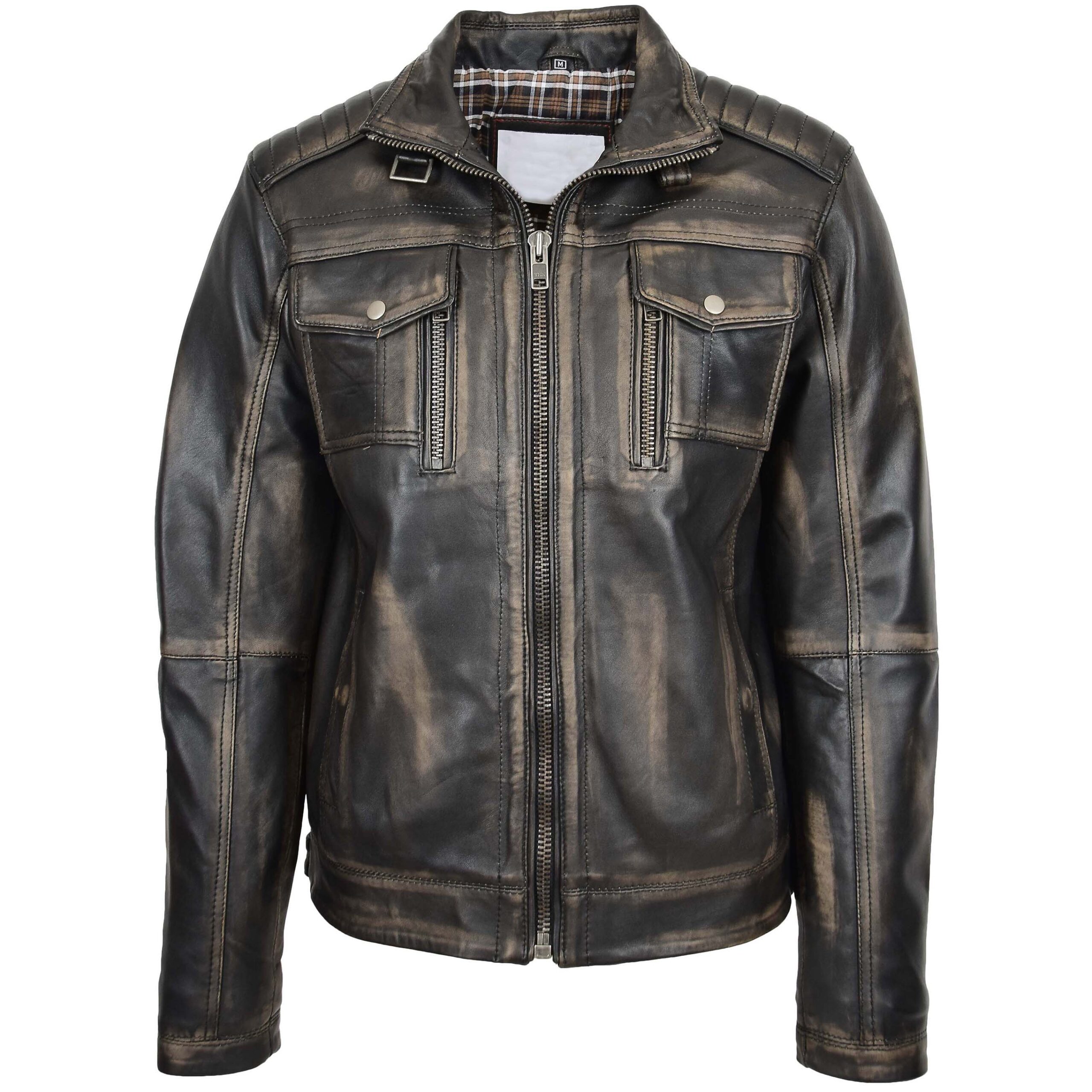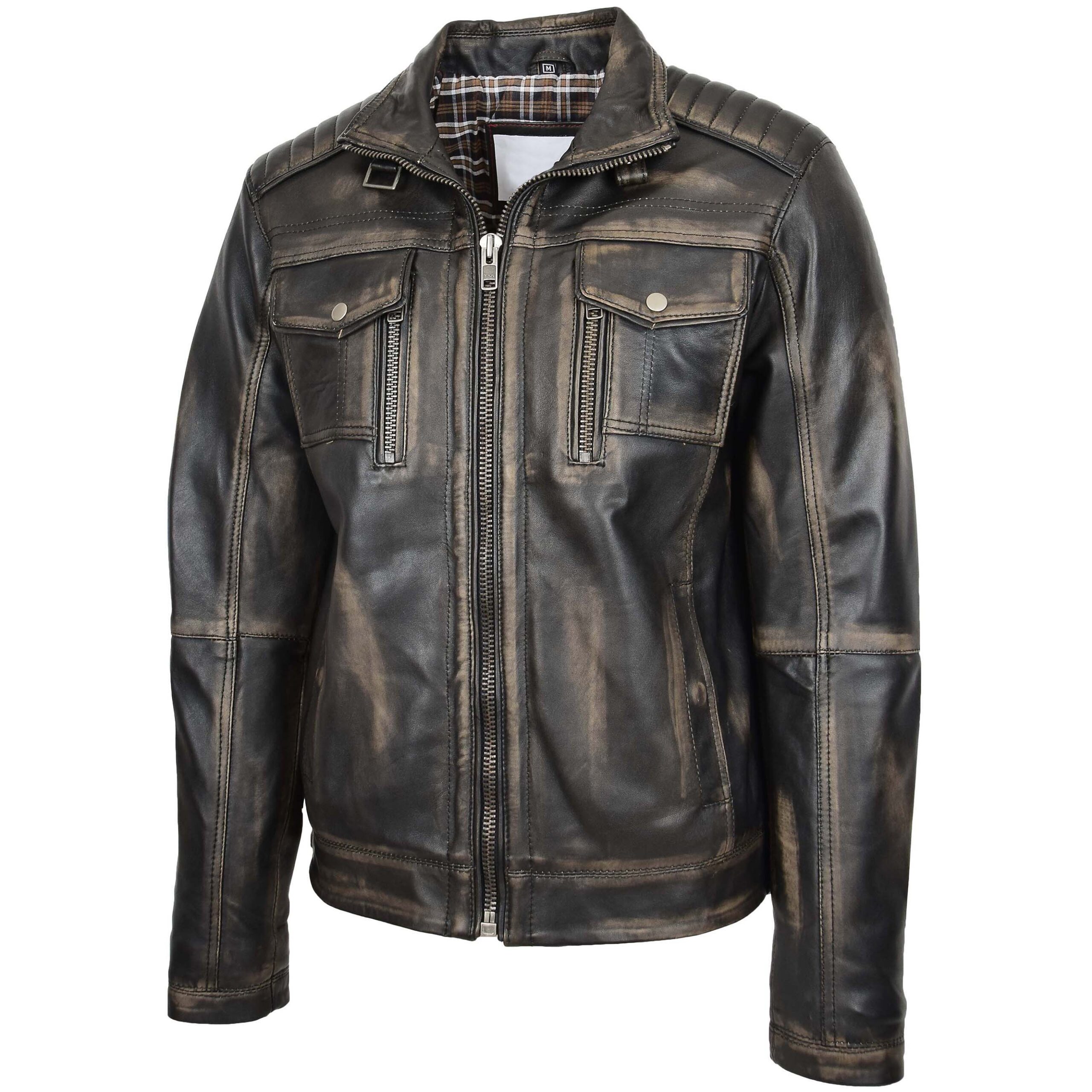 Mens Leather Urban Biker Style Jacket Hugo Paradox Rub Off