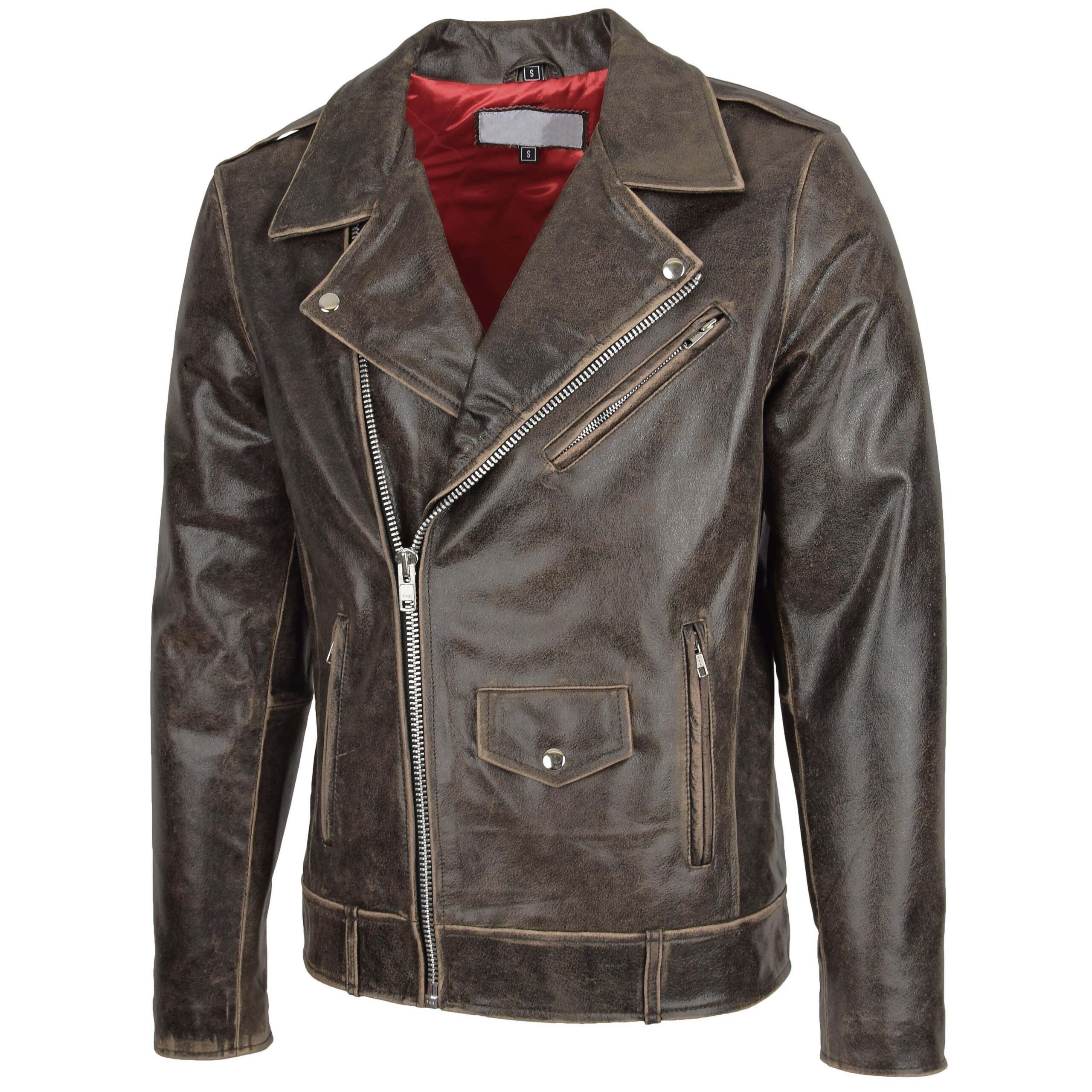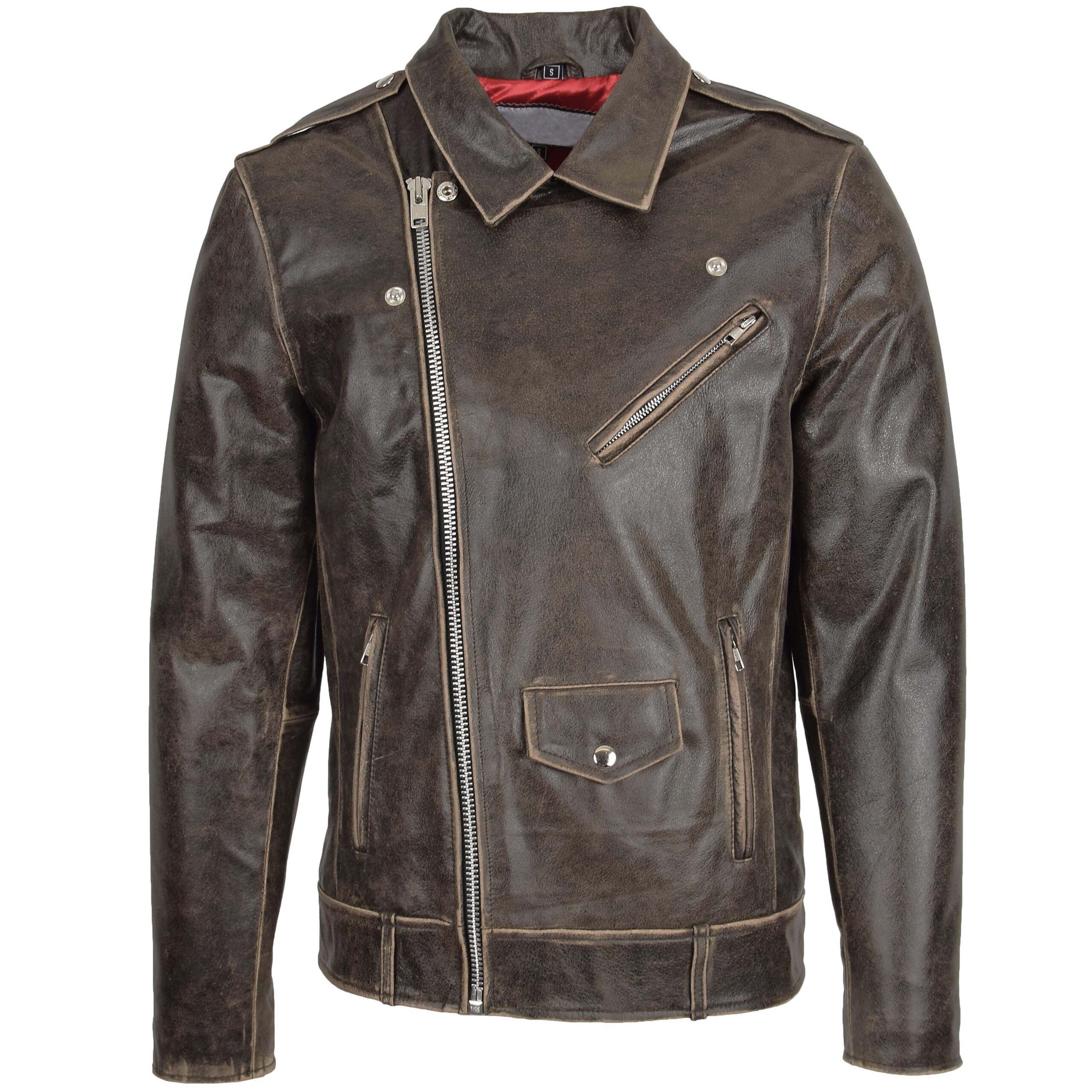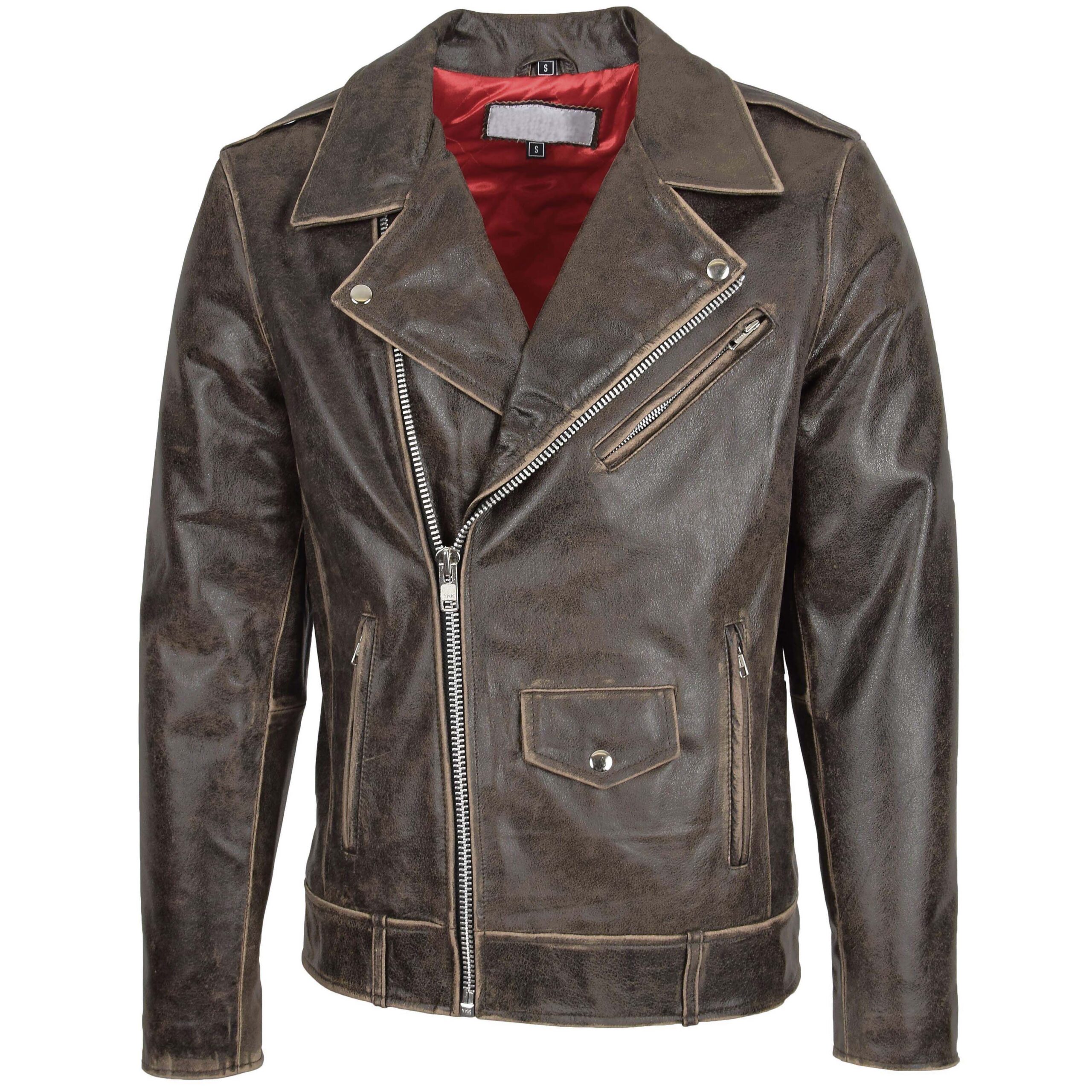 Men’s Motorcycle Biker Vintage Distressed Brown Real Leather Jacket