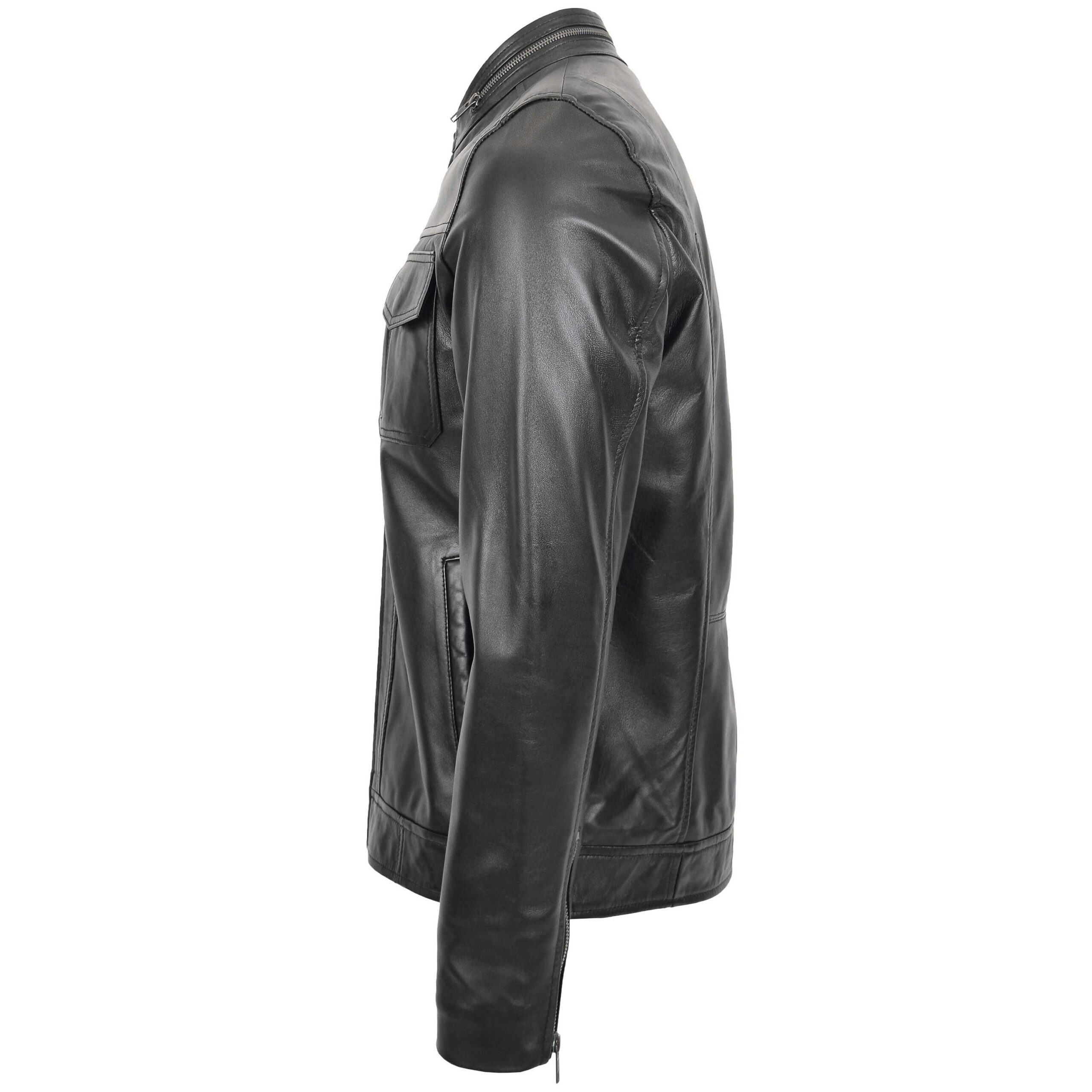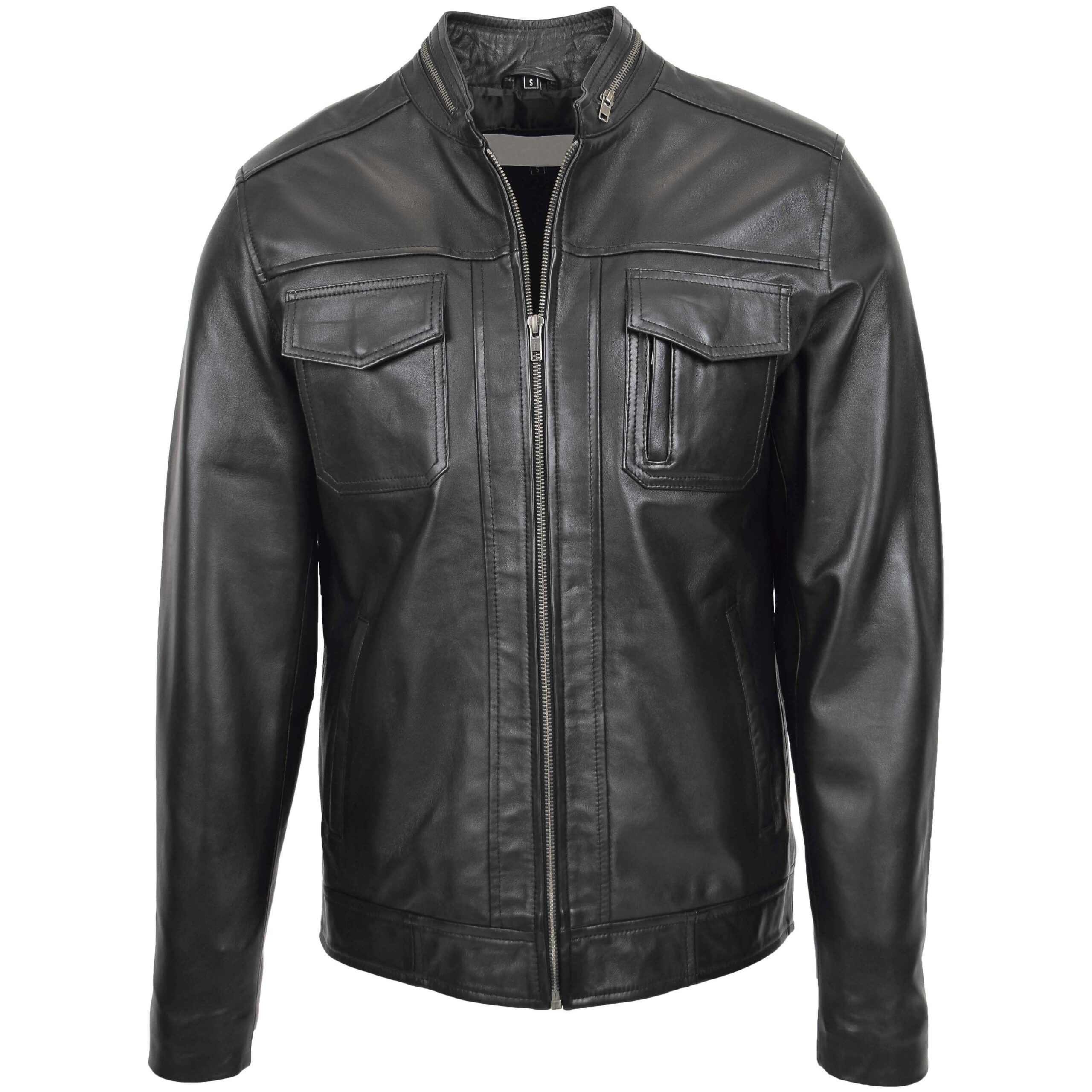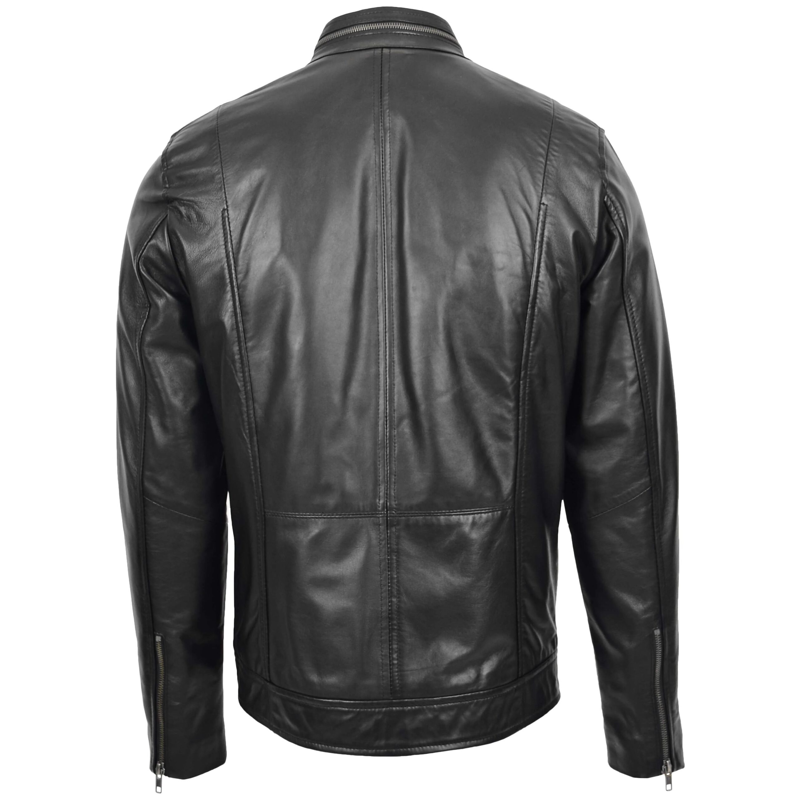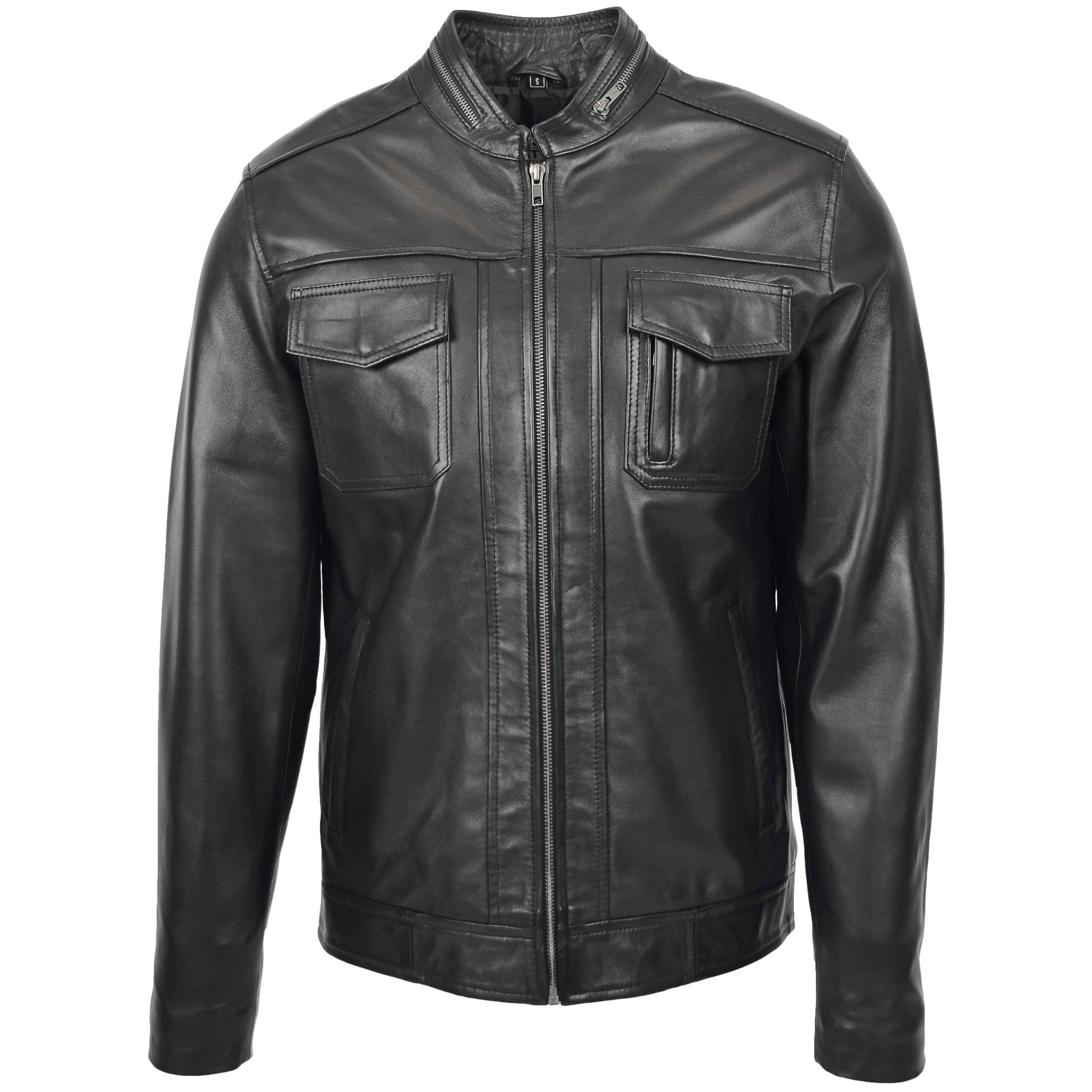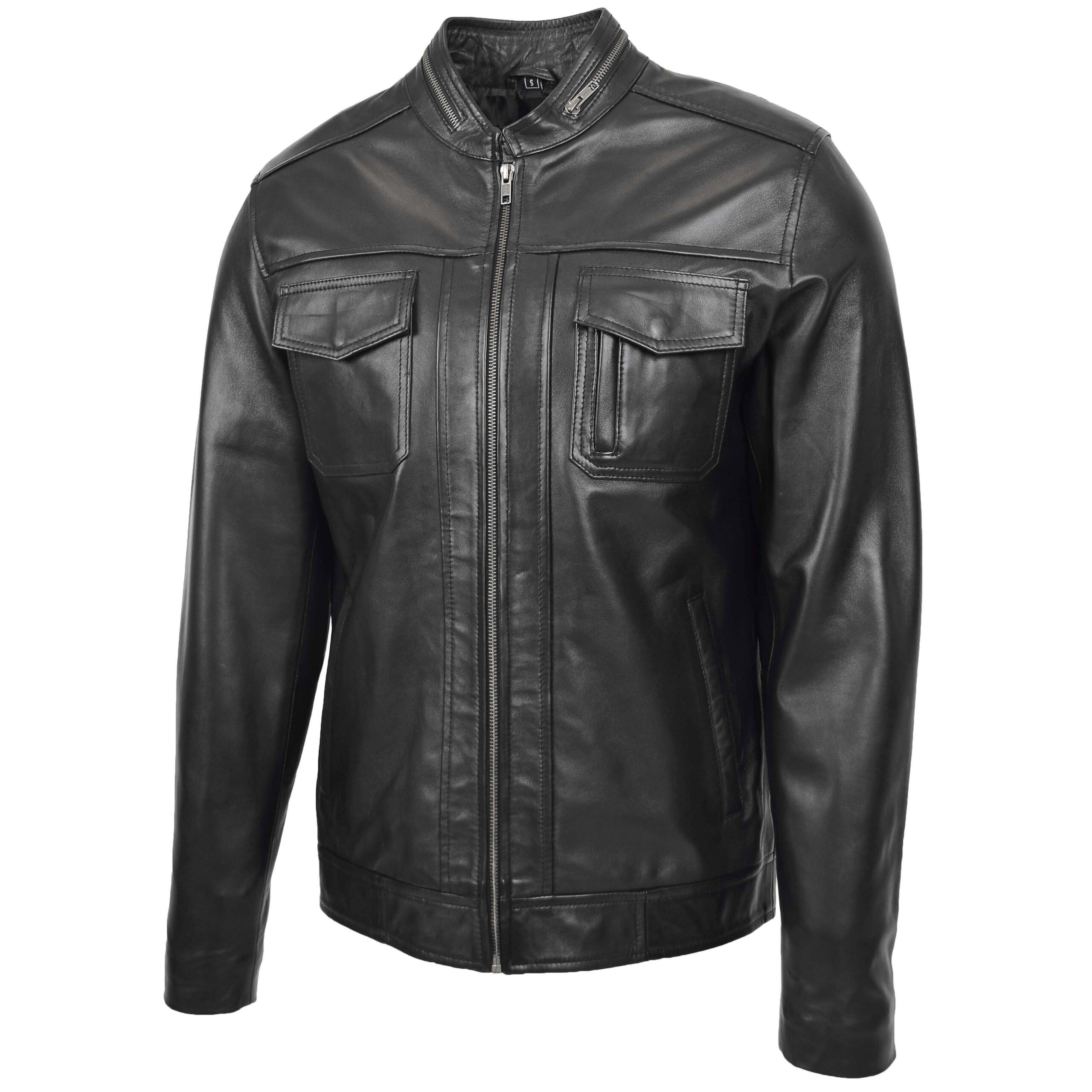 Mens Real Leather Biker Jacket Casual Zip Fasten Style Jaime