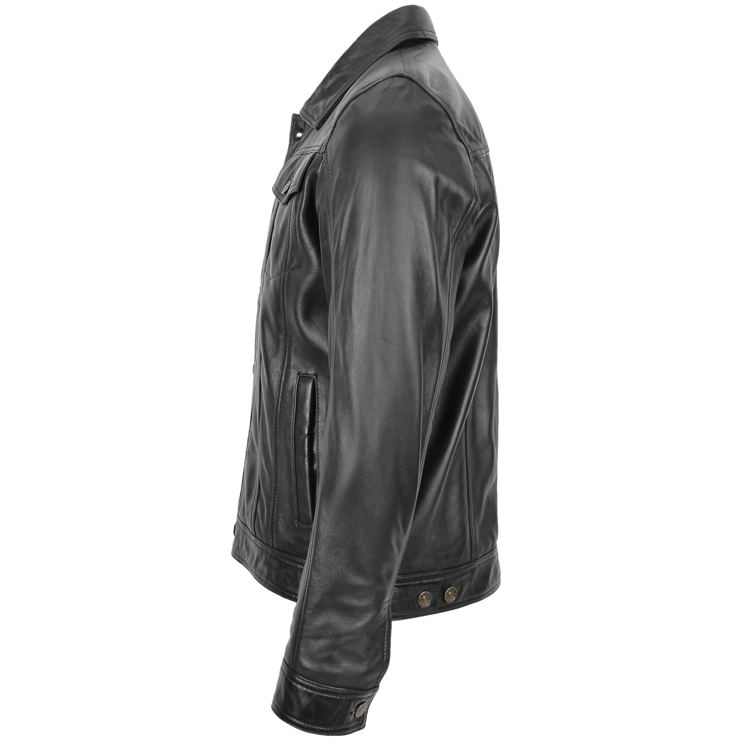 This jacket fits outings, streetwear, office casual, rides, and daily activities. The inside keeps comfort. The outside gives a bold trucker-rider style. The Mens Real Leather Trucker Jacket Lee Rider Style Terry pairs well with jeans, boots, tees, and winter layers. It works in all seasons and suits both modern and classic looks.