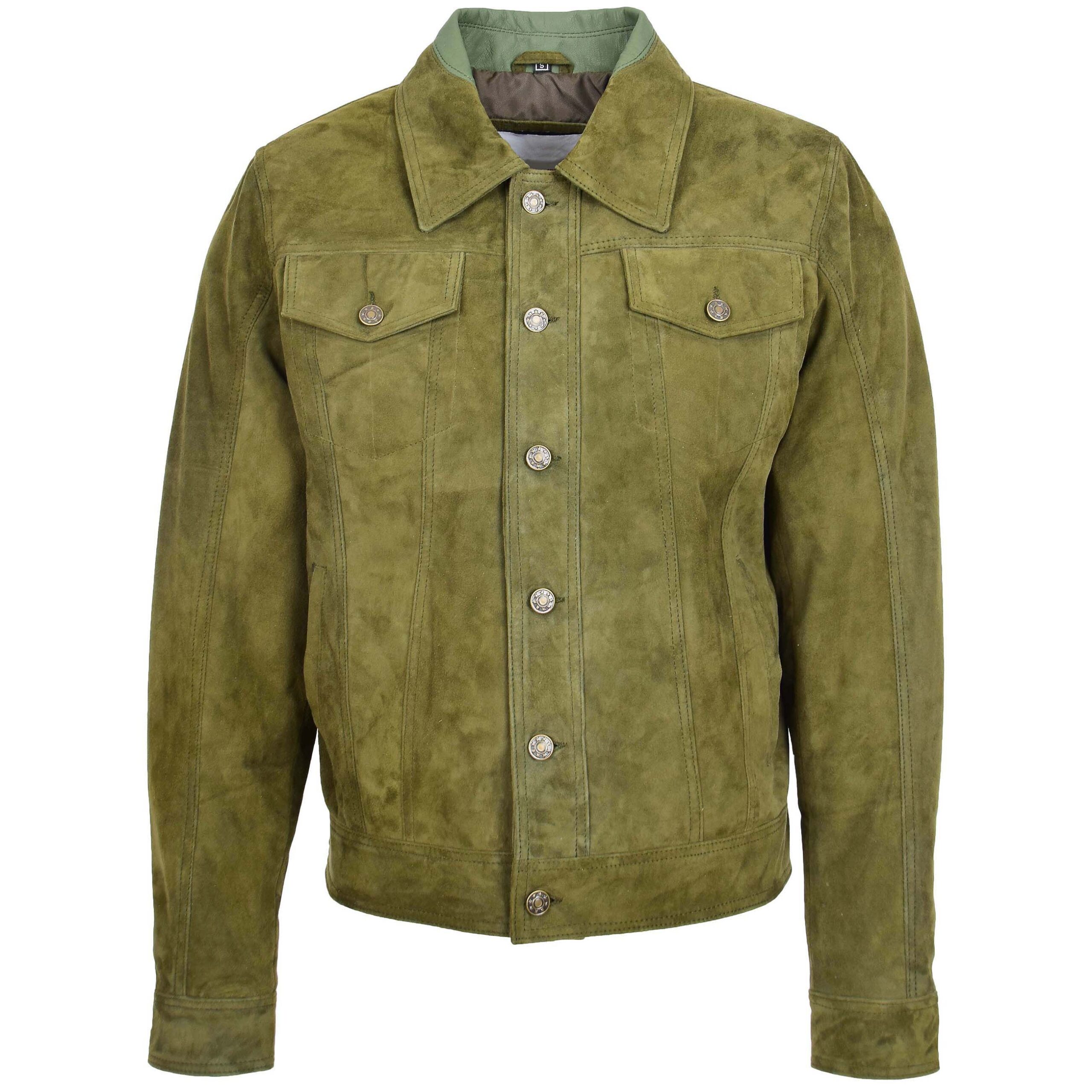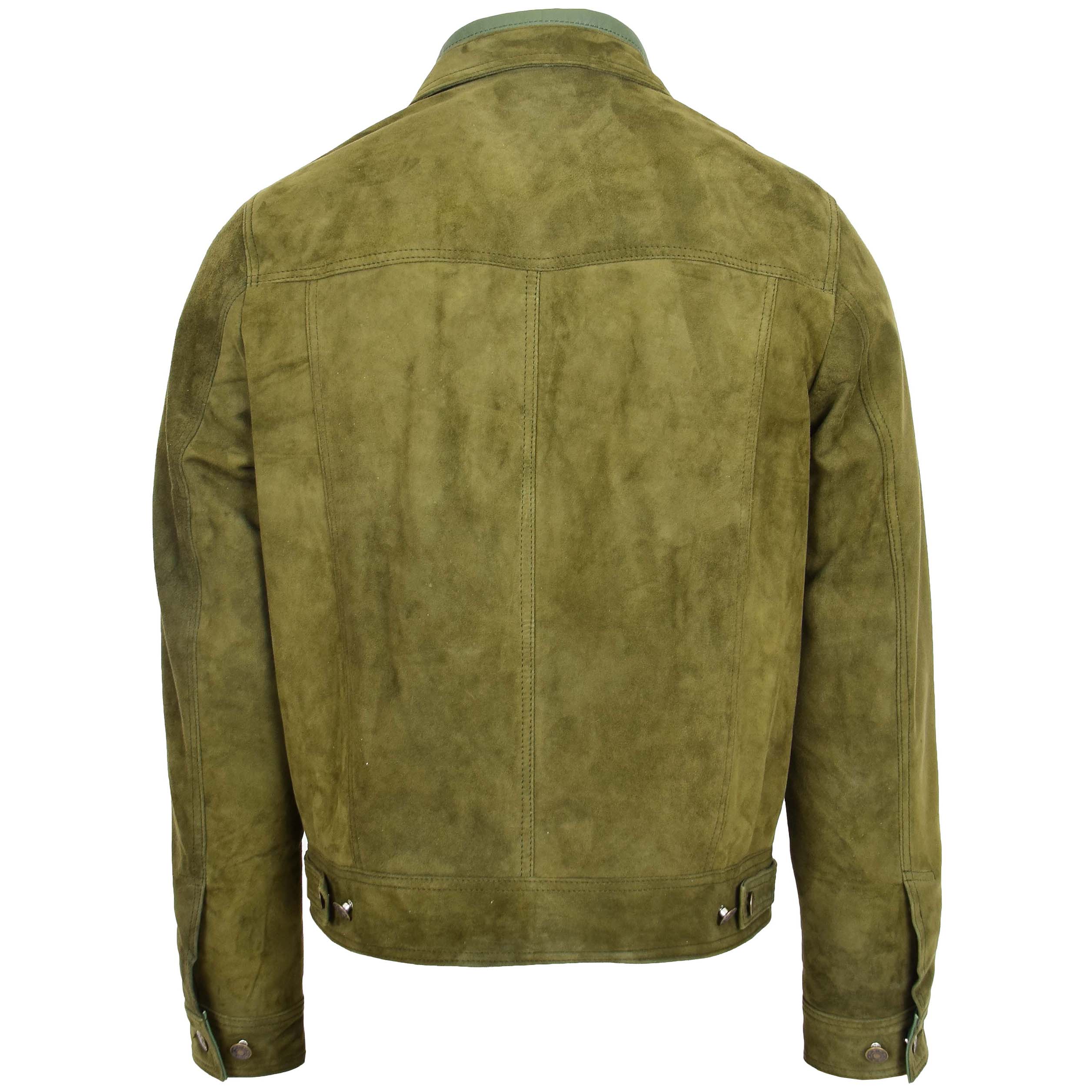 Mens Real Suede Trucker Harrington Jacket Daryl Aurora Green