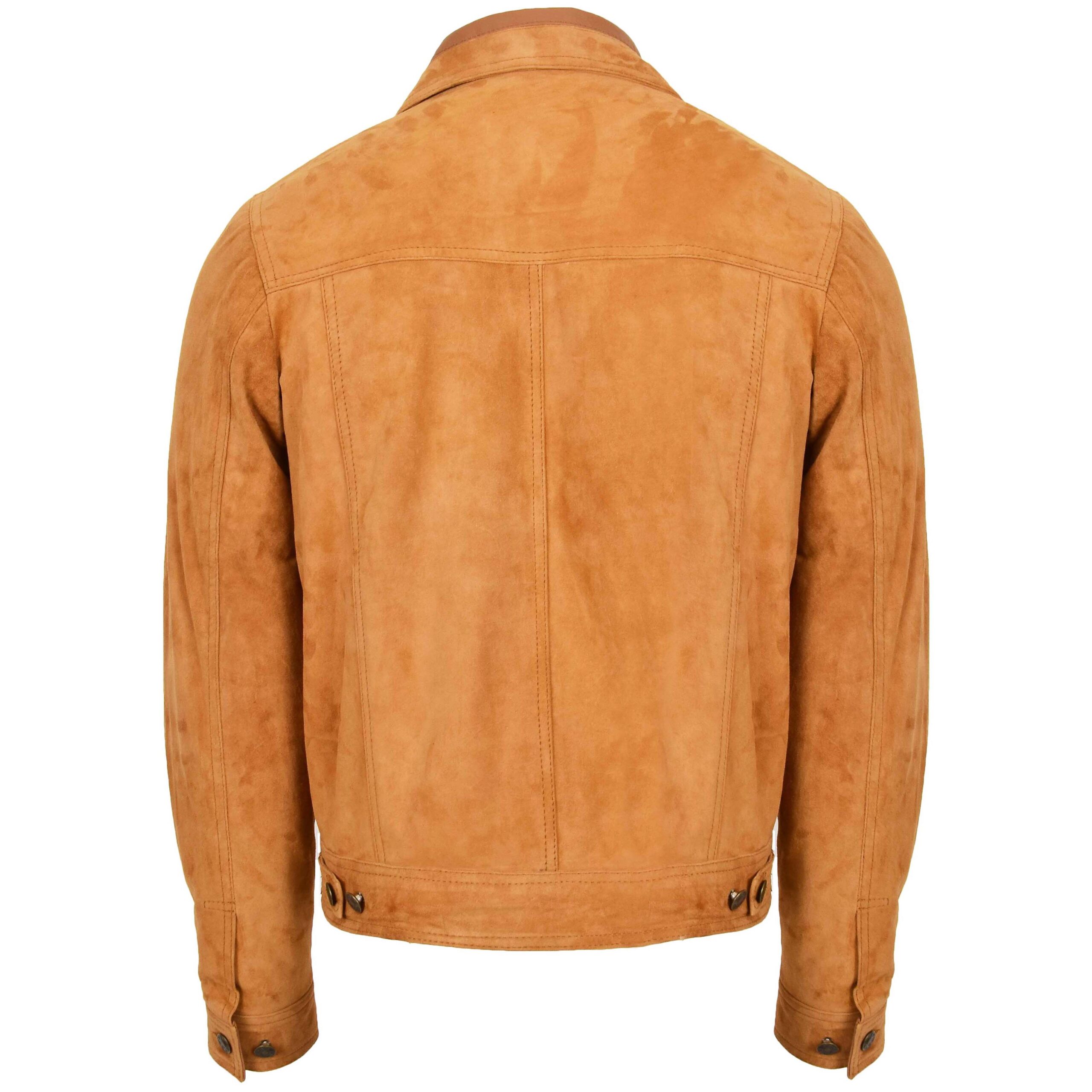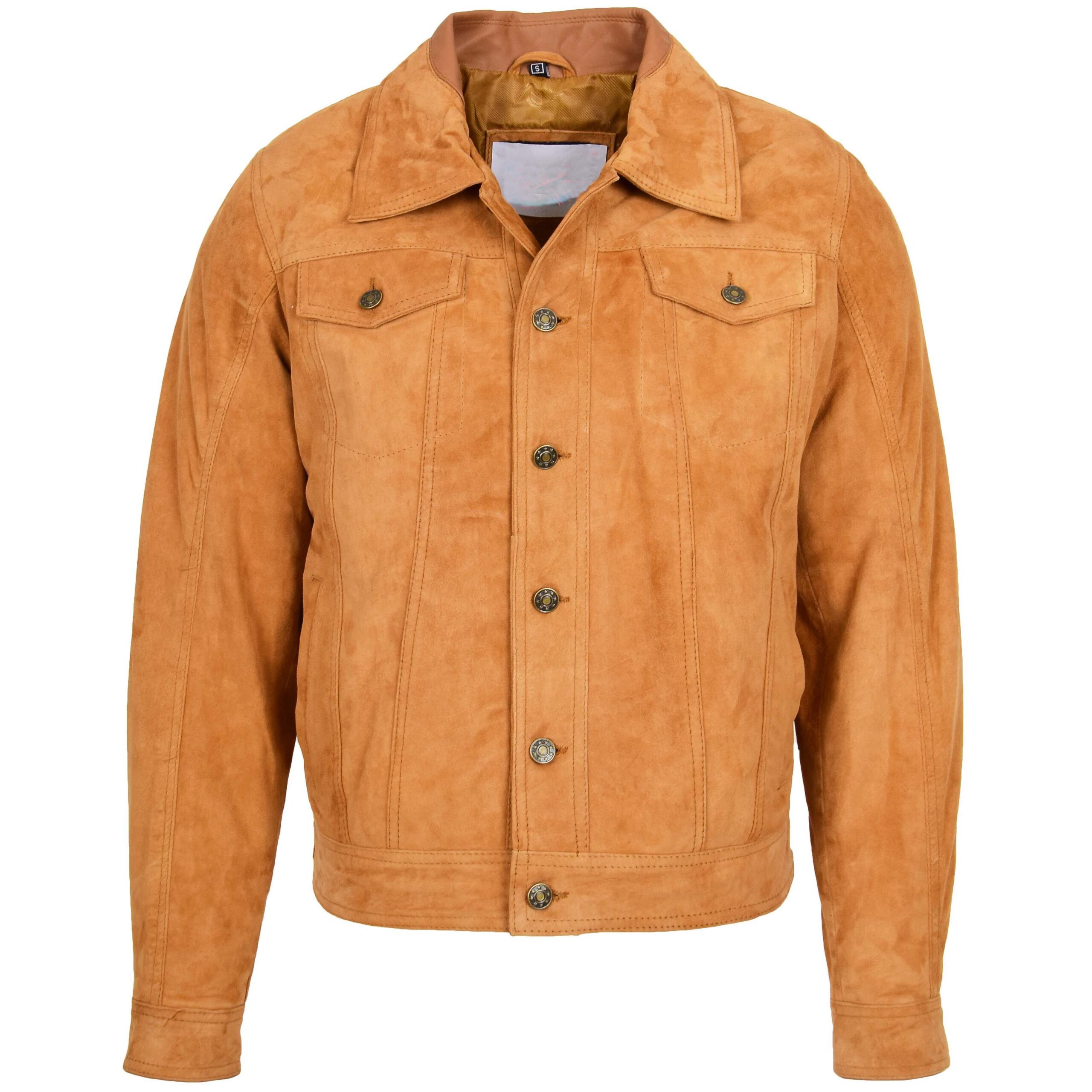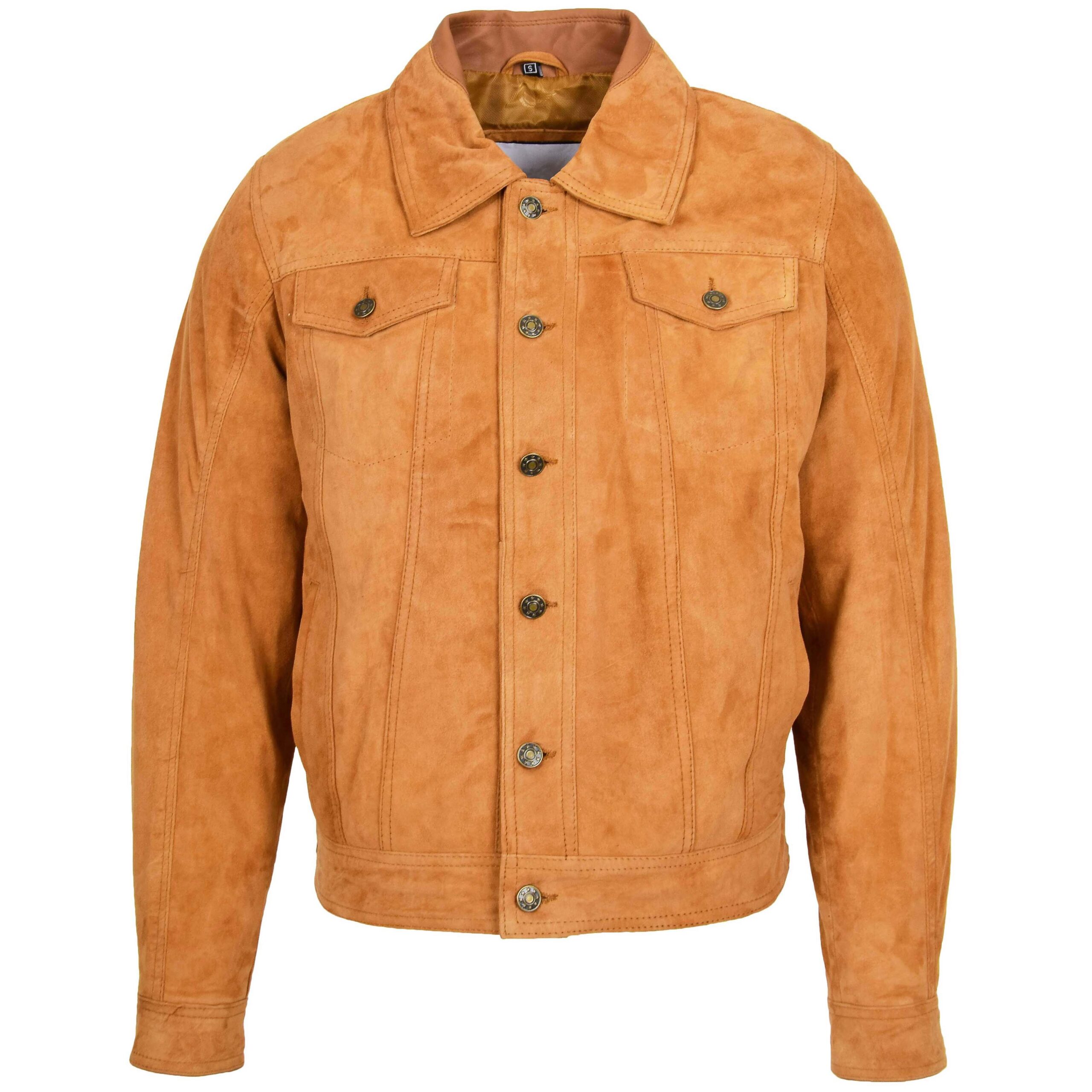 Mens Real Suede Trucker Harrington Jacket Daryl Dynamo Tan