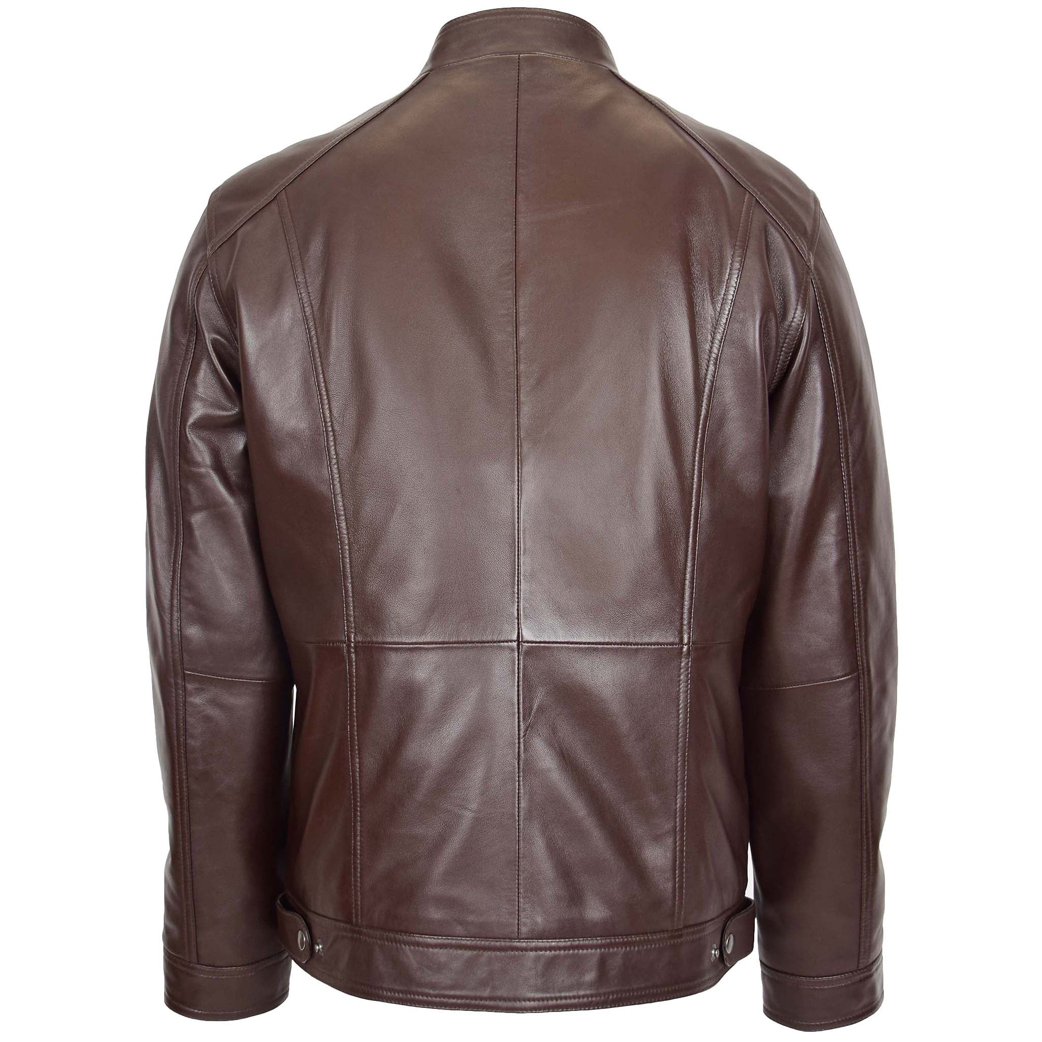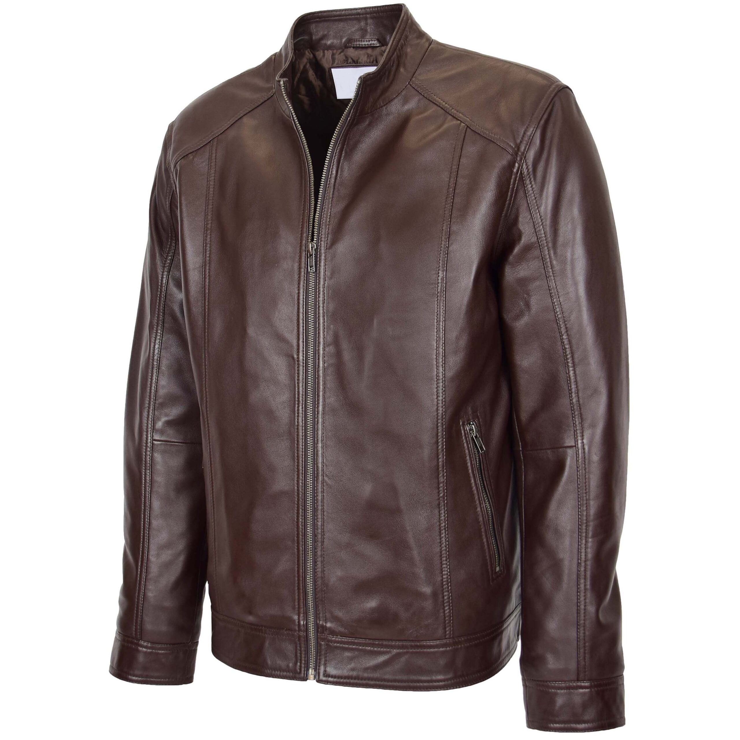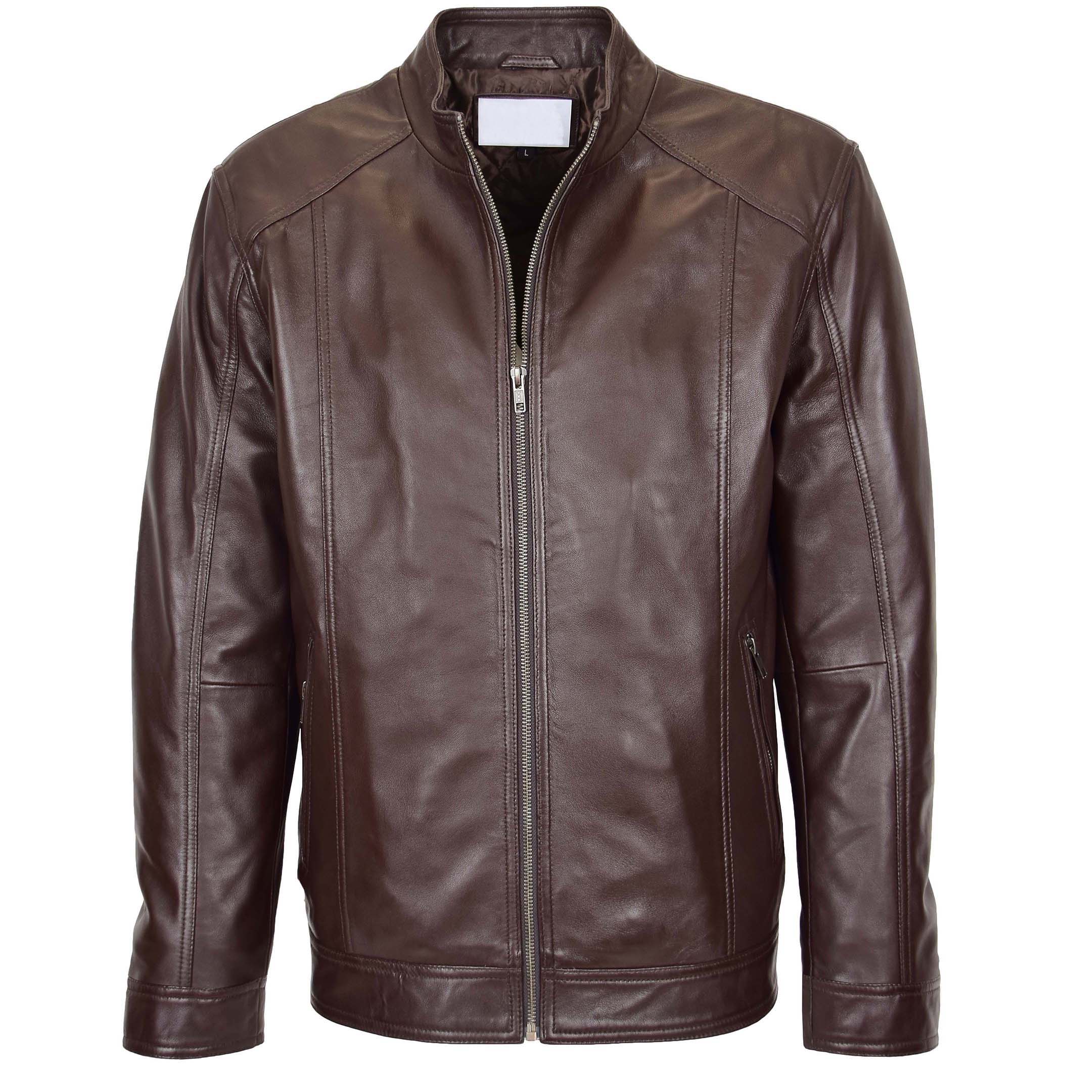 Mens Soft Leather Casual Plain Zip Jacket Matt Zenith Brown