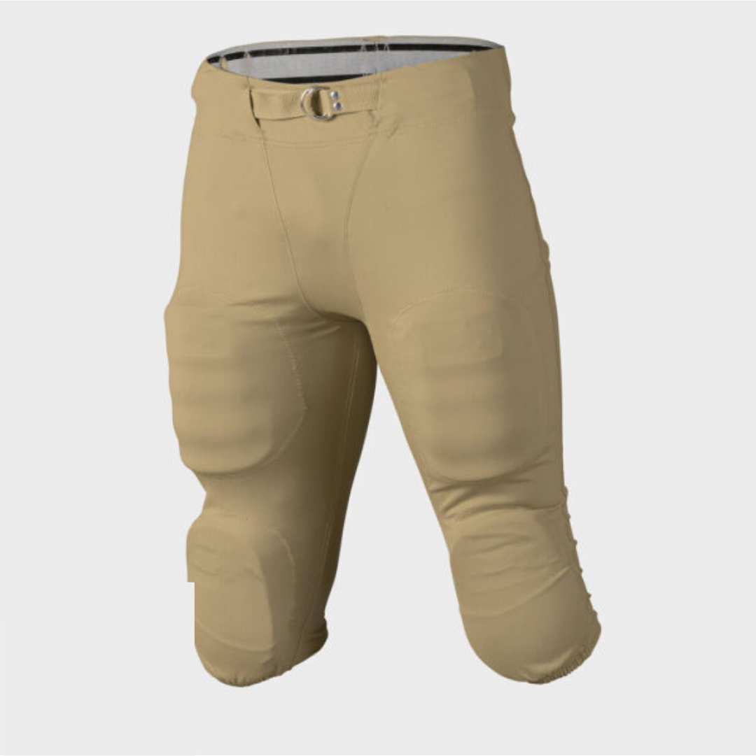 Sports Unlimited 7-Padded Football Pants with belt protect without bulk. The photo shows a navy pair with a belt and built-in pads at the hips, thighs, knees, and tailbone. This Padded Football Pants fit close, breathe well, and move with you. Dedo Sports supplies them for practice and game day.